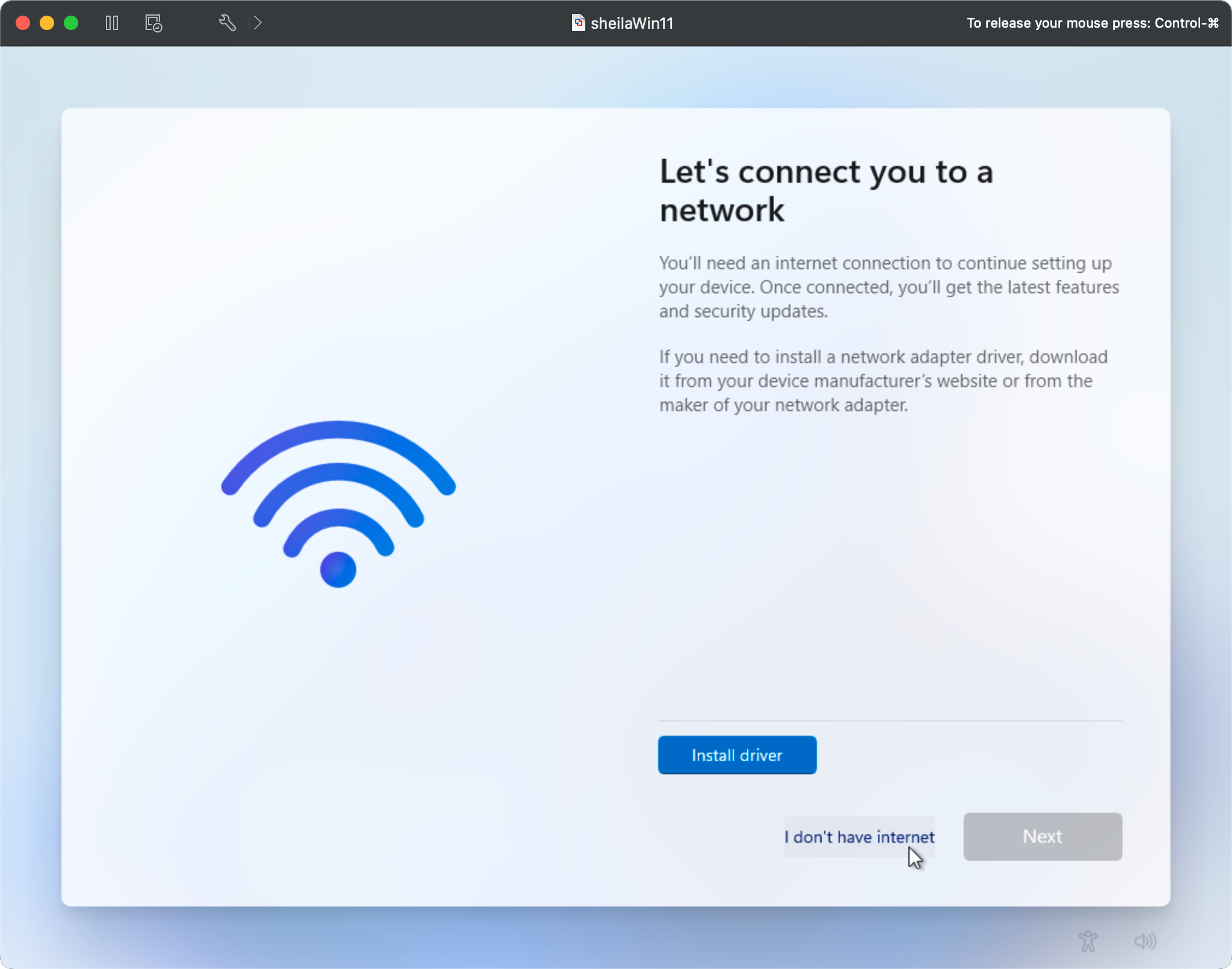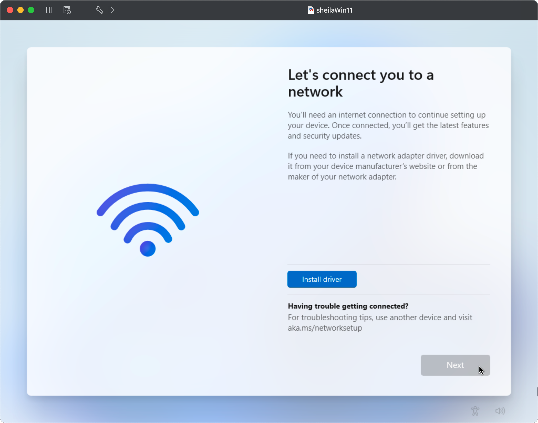 When you try to install Windows 11 in a virtual machine, you'll likely get stuck with the install prompting you to install a driver (or to use a Microsoft account):