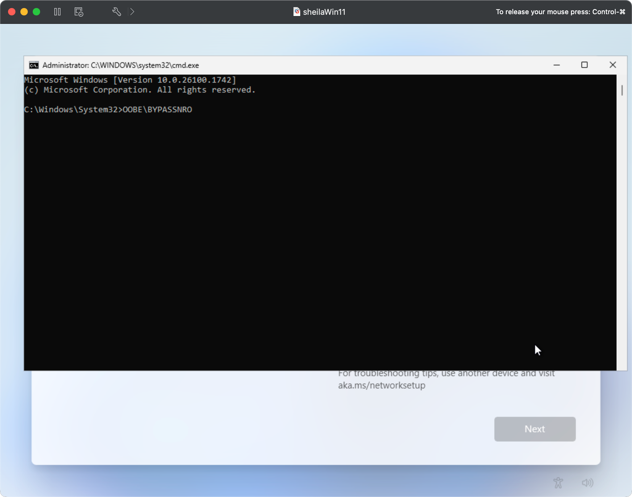 BYPASSNRO script from preview builds of Windows 11 starting in April 2025. If you discover that the above command does not work, try hitting SHIFT+10 and running start ms-cxh:localonly. This should prompt to create a local account and then the Windows 11 install will proceed.This will restart the install, adding an "I don't have internet" button enabling you to proceed through setup wizard: