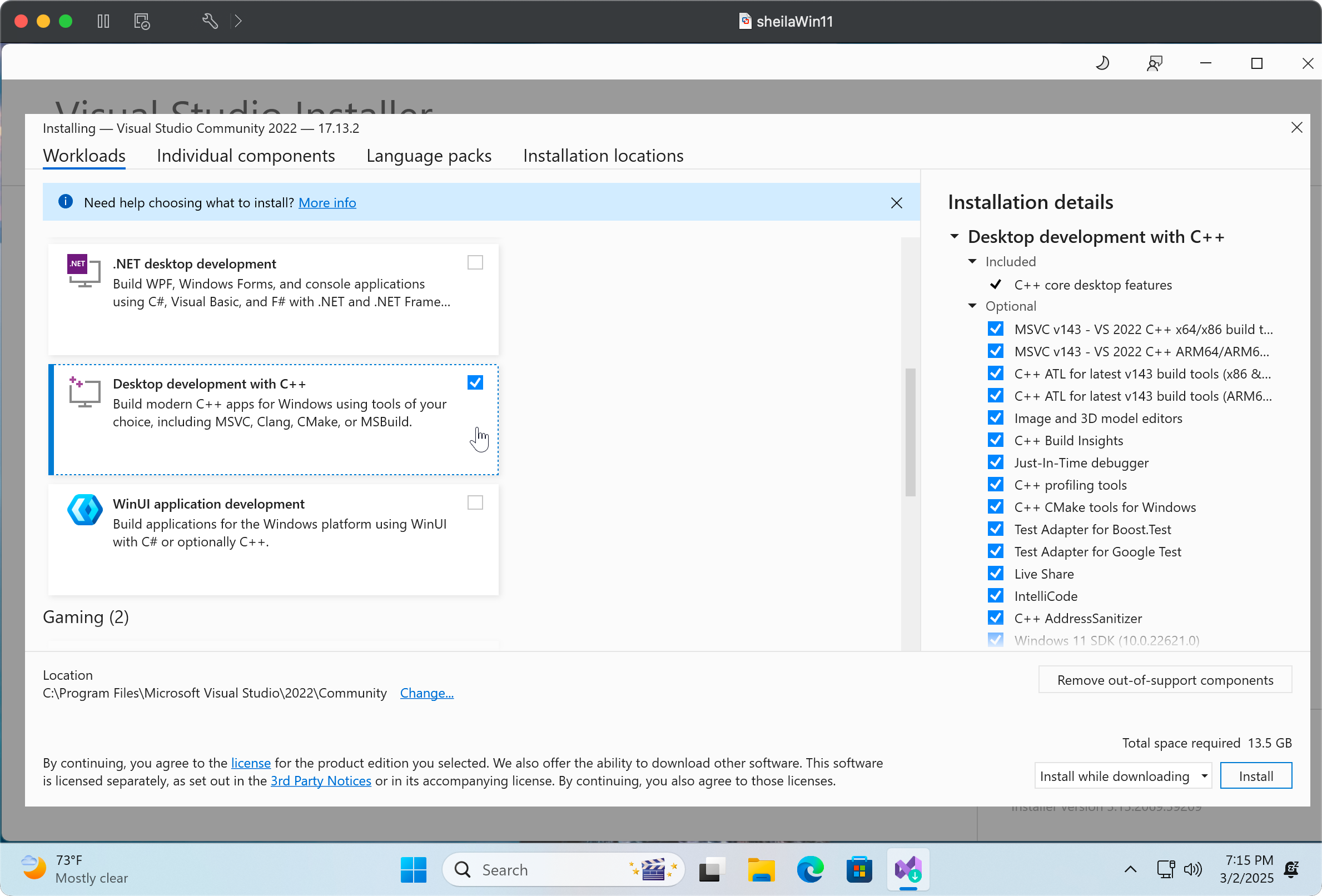 Installing Visual Studio Community 2022