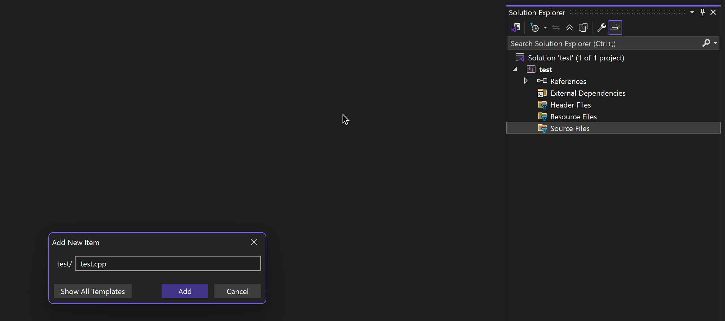 - Add "test.cpp" (or whatever C++ file you like)